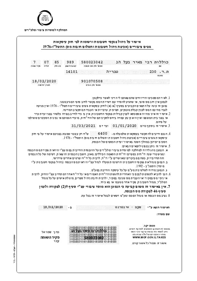 בעמוד זה תוכלו לצפות באישורים הנדרשים על עמותת הכוללות שלנו, כדי שתהיו בטוחים שתרומתכם הנדיבה מגיעה למקומות הנכונים.