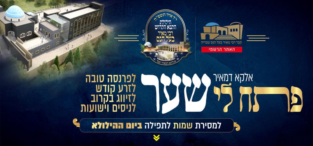 לכל אחד ואחת מאיתנו יש מישהו שזקוק לתפילה. השאירו עכשיו שמות לתפילה ואנו נתפלל עבורכם בציון התנא הקדוש רבי מאיר בעל הנס זיע"א ביום ההילולה !